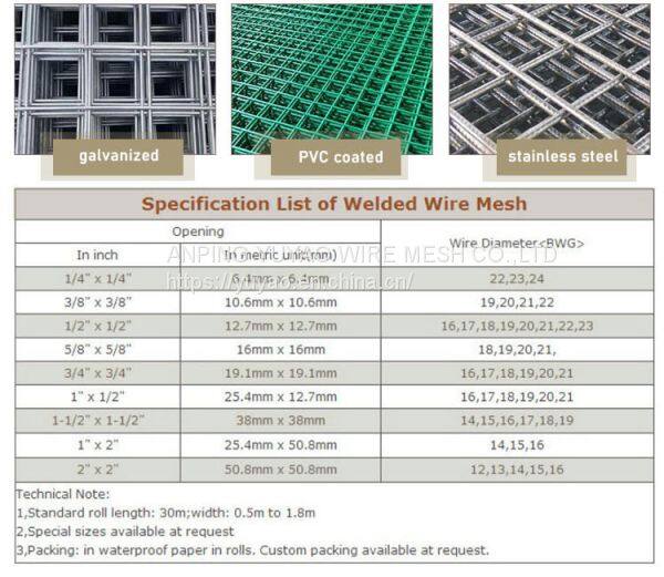 2x2 4x4 5x5cm Hot Dipped Galvanized Pvc Coated Welded Wire Mesh