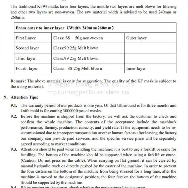 Kf94 mask what do you mean KF94 masks are manufactured under the standards set by the food and drug administration of the republic of Korea. KF94 refers to a type of mask whose filtration rate of particles with an erage diameter of 0.4 meters is greater than 94%. At present, all the protective masks and disposable masks in China he been sold out, and the popular N95 and KN95 masks he also been sold out. So, people went after the KF94 mask. N95 masks are masks with a diameter of 0.3 meters, which filter more than 95 percent of non-oily particulate matter. These masks are made under American standards. Compared with N95 masks, KF94 has a slightly lower filter diameter and filtration rate. However, the standard of KF94 can still filter out the virus brought by droplets in the air, which can play a role in preventing the novel viral pneumonia. Although the standard of KF94 is slightly lower than that of N95, it can also play a protective role, and the price of KF94 is lower than that of N95. Automatic folding one mask machine, the product is used in the production of fold masks production line fully automatic machine, using ultrasonic technology, will be 3 ~ 5 layers of PP nonwoven fabric and melt-blown fabric, activated carbon and filtration material welding, non-woven welding, ear with welding, folded in half, sealing side, slitting the integration of automatic production line for fold masks, N95, KF94 (not Korea KF94 fish this) and other fold masks. As with the N95 structure, the aluminum frame and sheet metal doors are self-improved, with labeling and offset mechanisms removed. Depending on the raw materials used, the masks produced can meet different standards such as FFP1, FFP2, N95, etc. No manual operation is required during the whole process. All masks are manufactured by mechanization. The drawings are for reference only How often a KF94 mask is changed depends on the situation and cannot be generalized. Its use time is related to the environment used, different particle concentration, nature, storage mode, personal habits and other factors. First look at what is KF94 masks, various countries and regions he different masks for each index by the standard of data, usually N/R/P series is American standard, KN/KP series is the Chinese standard (GB2626), FFP series is the European standard, and KF is the Korean Filter shorthand, KF series standard is by the south Korean food and drug administration issued the south Korean mainstream standard masks. KF series is divided into KF80, KF94 and KF99. Among them, the filtration efficiency of KF94 mask is 94%, which means that 94% particles with a diameter of 0.4 meters can be filtered out at least, and both oil and non-oil particles can reach the same level. Non-oil particles include dust, lacquer and microorganisms. Therefore, this mask has a certain isolation effect on the virus. In theory, KF94 masks can be reused. If you are worried about the safety, you can choose to discard them after using them once. If the user is polluting the environment for a long time, it is better to change every 8 hours. We remind you that if the KF94 mask is damaged, contaminated or the wearer feels increased respiratory resistance, it should be replaced in time. In addition, the filtration diameter and filtration efficiency of N95 masks are better than that of KF94. Therefore, it is currently clinically recommended that the public use N95 masks in the prevention of covid-19. What is the correct way to use kf94 mask? Below small make up to explain in detail. Step reading 1 Wash your hands before using If you want to wear a kf94 mask properly, you should first wash your hands, use soap, and use running water to wash your hands. Only after you wash your hands can you be sanitary. Only after that can you wear a mask. Step reading 2 Recognition of location The mask is a little protruding, protruding towards the outside of the face, the front is dark, the reverse is light, the metal strip is above, this position should be recognized. Step 3 read A rope was tied round the ear Then unfold the mask and put a piece of rope over your ears. When you do this, your hands should not touch the inside of the mask. This should be paid special attention to oid contaminating the mask. Step reading 4 Another piece of string was tied around the other ear Then put another piece of rope around the other ear and stretch the mask properly. Do not deform the mask. If it deforms, the mask will not be able to play a protective role. Step reading 5 Press the metal strip properly