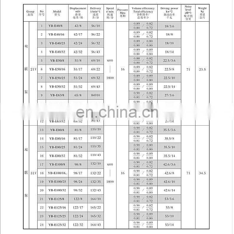 YB-E Series Double Pump YB-E63/32 YB-E63/25 YB-E63/8 YB-E63/12 for Injection Machine