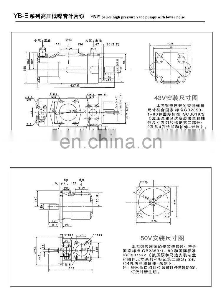 YB-E Series High Pressure Vane Pump With Low Noise YB-E200/40 YB-E200/50 YB-E200/63