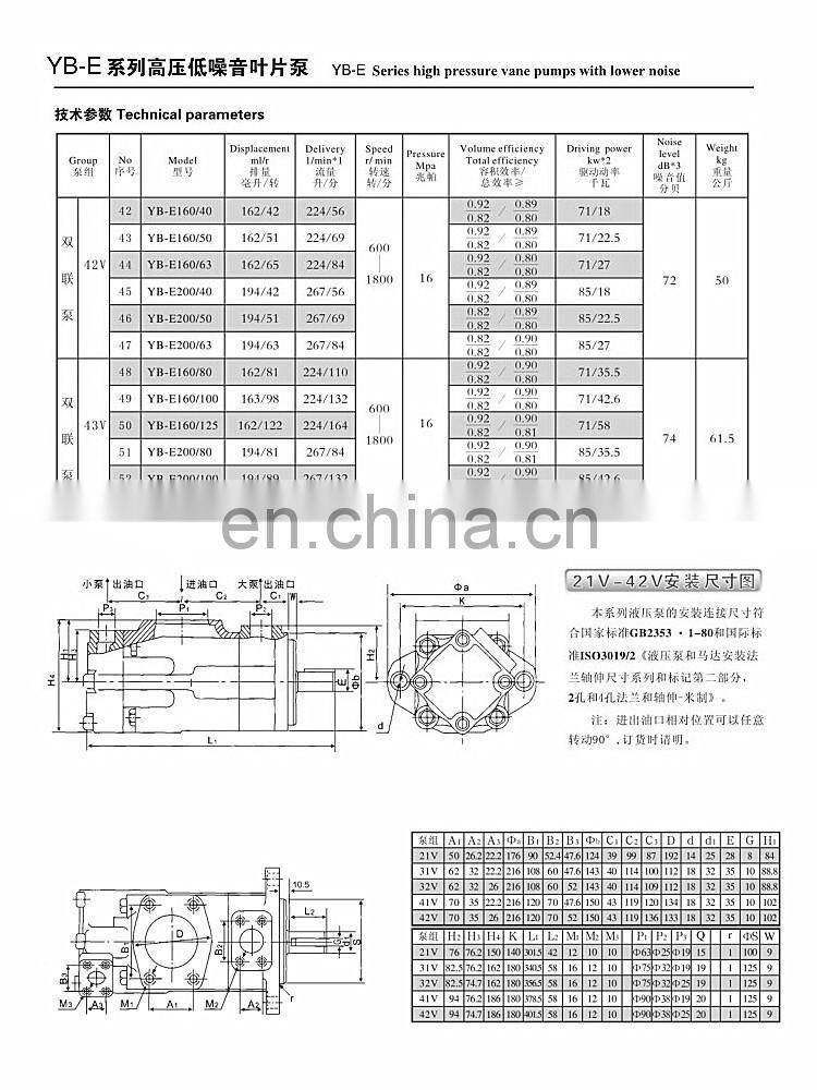 YB-E Series High Pressure Vane Pump With Low Noise YB-E160/40-50-63 YB-E200/40-50-63
