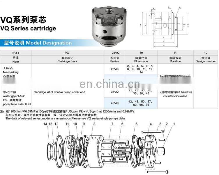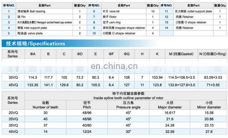 Zhenyuan Hydraulic Vickers VQ Vane Pump Cartridge Repair Kits 20VQ,25VQ,35VQ,45VQ