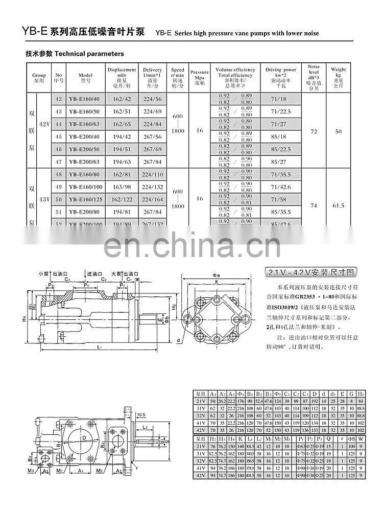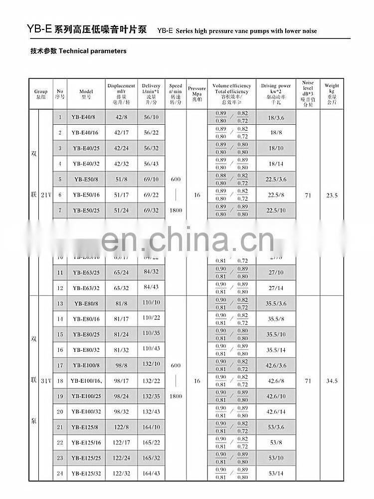 YB-E Series High Pressure Vane Pump YB-E80/40-50-63 YB-E100/40-50-63 YB-E125/40-50-63 for Injection Machine