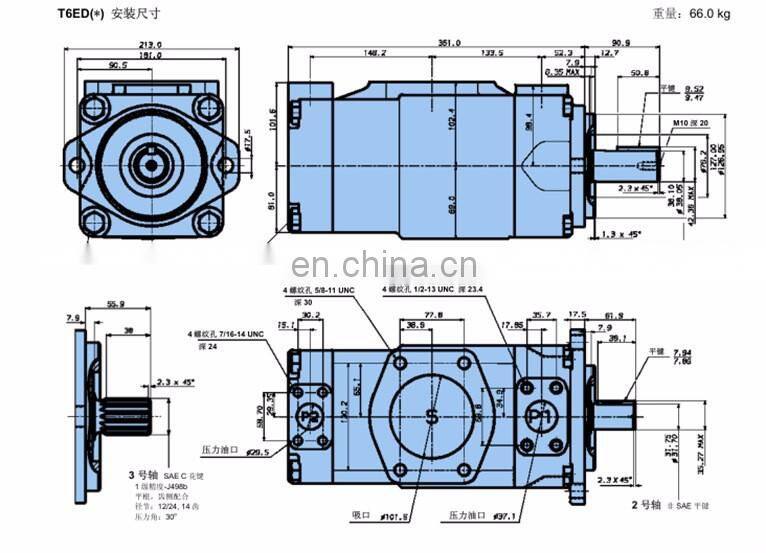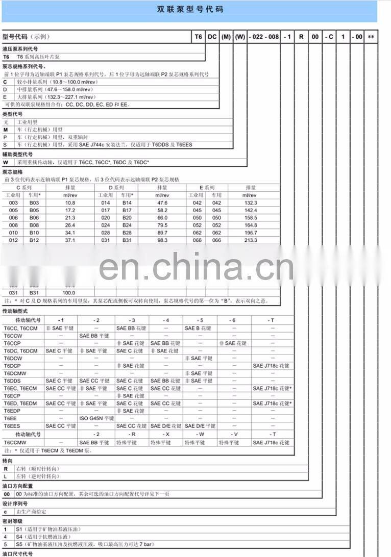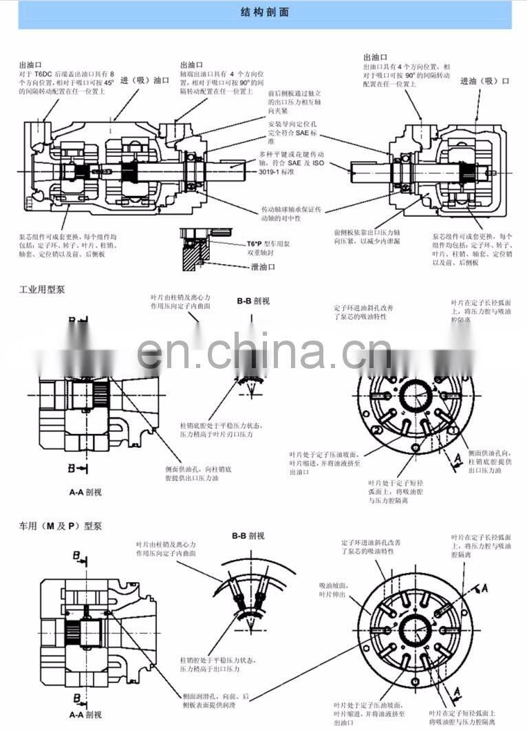 Denison vane pump in addition to the points of management to prevent dry and overload, prevent inhaled air and suction vacuum degree, also note: pump to change, is also changing the inhale row direction of steering vane pump has a regulation, not allowed to reverse.Because the rotor blades have a tilt, the blades have chamfering, blade bottoms and oil drain cavities, the throttle groove and suction and drain on the oil plate are designed according to the established steering.Small pump to 0.015 ~ 0.03 mm medium pump - 0.02 ~ 0.045 mm temperature and viscosity of the oil should not be commonly more than 55 ℃, the viscosity requirements between 17 ~ 37 was/s.The viscosity is too large for oil absorption;The viscosity is too small to leak serious.Reversible vane pumps must be specially designed.Vane pump assembly and oil pan with the stator with dowel locating correctly, vane and rotor, oil distribution plate are not allowed to put wrong, the stator inner surface suction area part of the most easy to wear and tear, can install the flip when necessary, to make the original suction area into the discharge area and continue to use.
