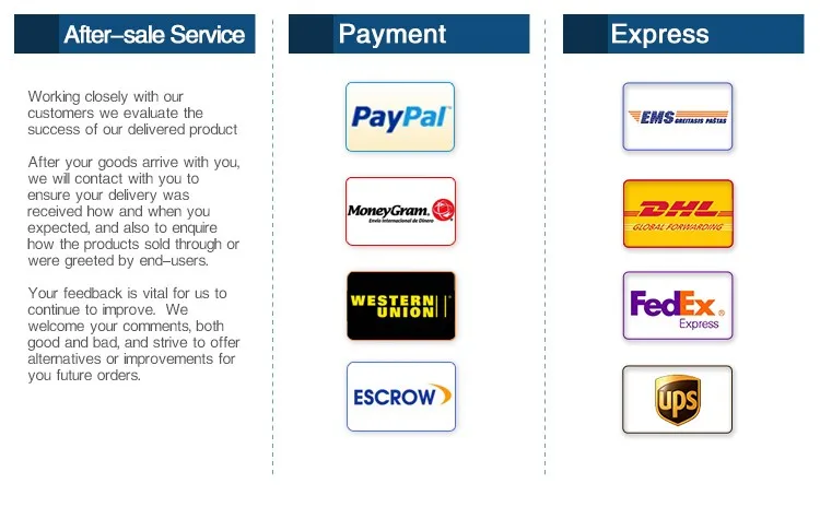 A: Payment<=1000USD, 100% in advance. Payment>=1000USD, 30% T/T in advance ,balance before shippment.