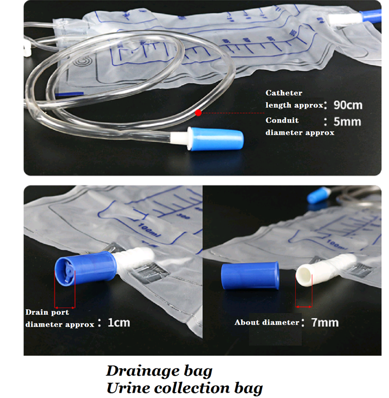 Disposable drainage bag, added with anti countercurrent channel membrane, body fluid will not flow back into the channel, which is more convenient to use.Product specification: 1000mlConduit length: 90CMConduit diameter: 5mmProduct details and size: the scale of drainage bag is clear, the range is (100ml ~ 1000ml), it is packed independently, and 50 in one medium package,The diameter of the liquid outlet is about 1cm, and the water can be discharged by gently rotating and twisting (unlimited direction). It has fine texture, good toughness and is not easy to be damaged.