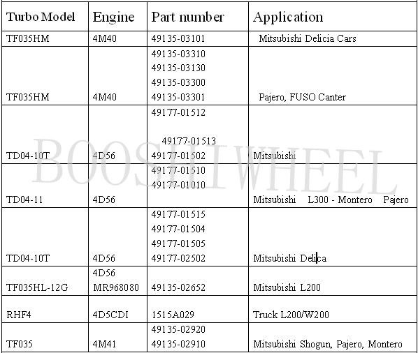 | Application | MITSUBISHI Canter,Challanger,Delica,L400,Pajero,Shogun |