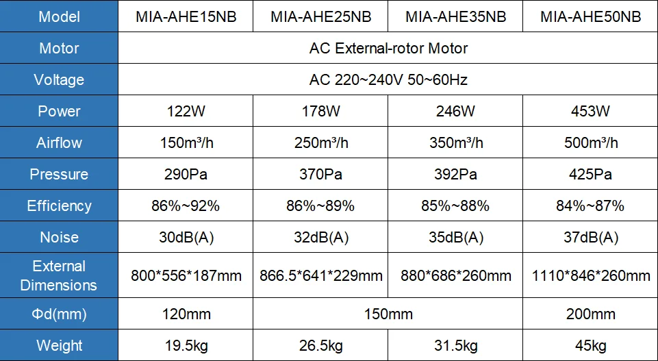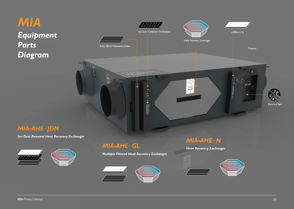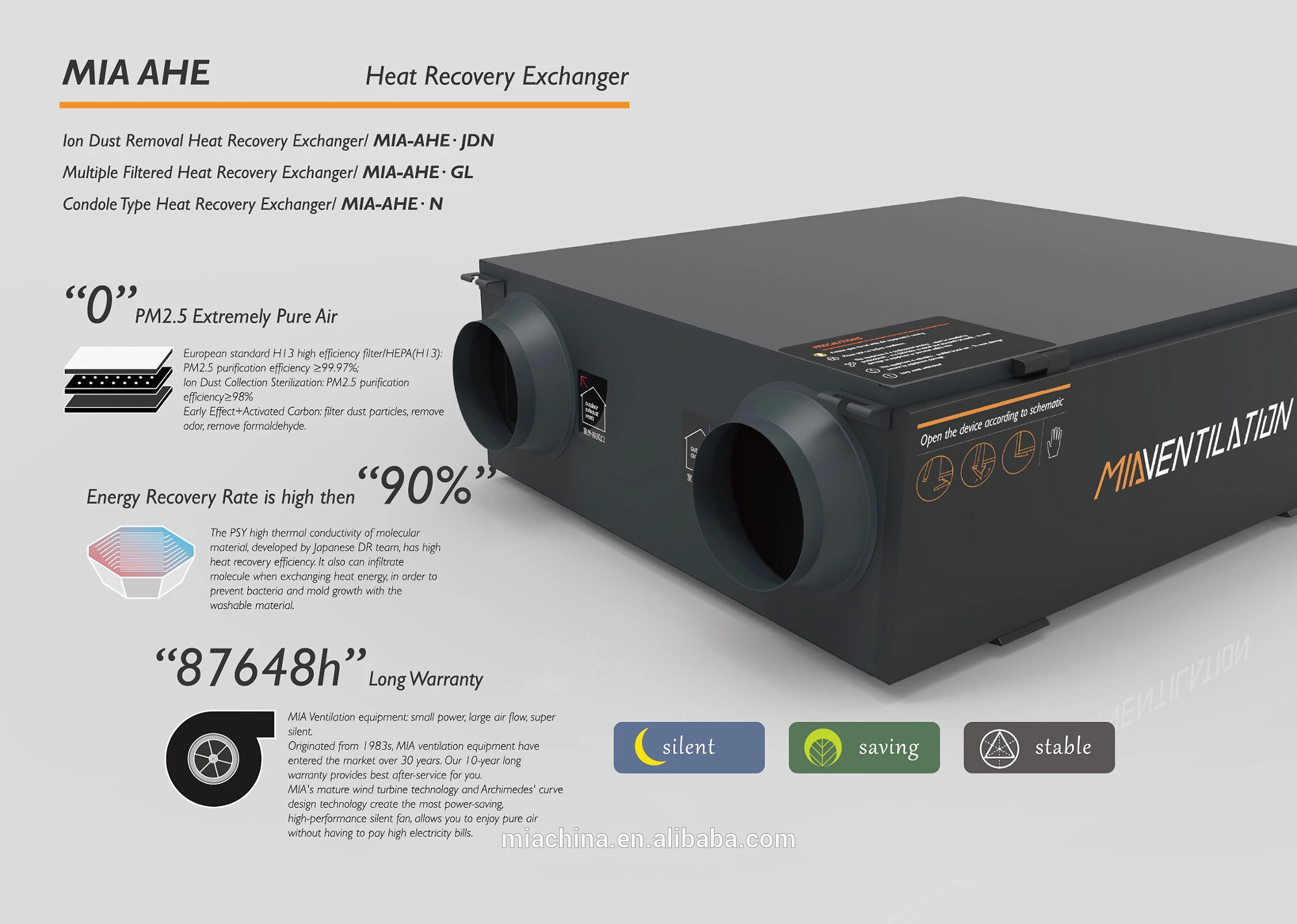 Overview Quick Details Warranty: More Than 5 Years, 10 Years After-sale Service: Online Technical Support Project Solution Capability: Graphic Design, 3D Model Design Place of Origin: Jiangsu, China Brand Name: MIA Model Number: MIA-AHE2500N Air Flow: 250