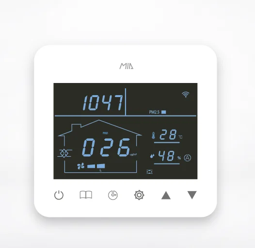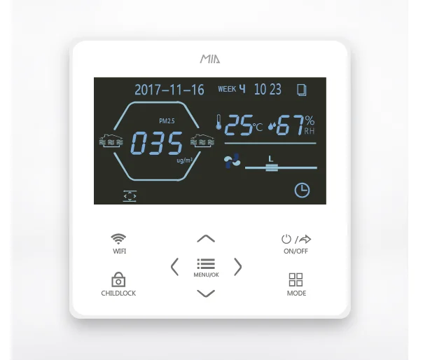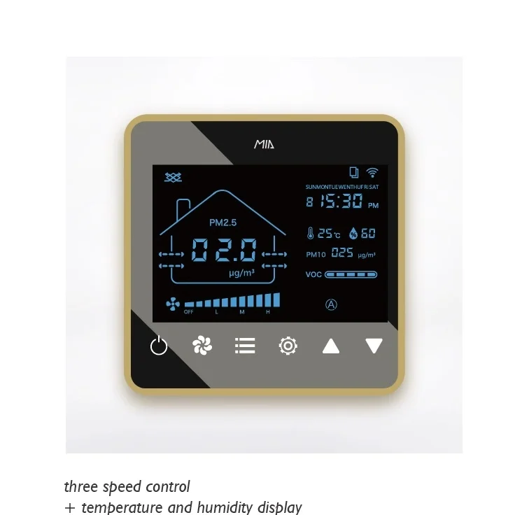 Three Speed Control +temperature and humidity display +time setting +PM2.5 display +CO2 display +APP control
