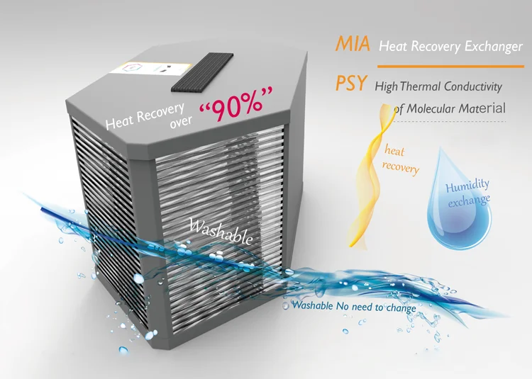 The PSY high thermal conductivity of molecular material, developed by Japanese DR team, has high heat recovery efficiency. It can infiltrate water molecules in the process of heat exchange; with the washable material, also can avoid the problem of bacteria and molds production.