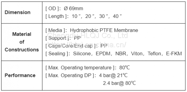 Hydrophobic PTFE Series filter cartridge is constructed of hydrophobic PTFE membrane which has excellent chemical compatibility and corrosion resistance.This filter cartridge is suitable for the filtration to liquids and gases with strongly aggressive and oxidative.