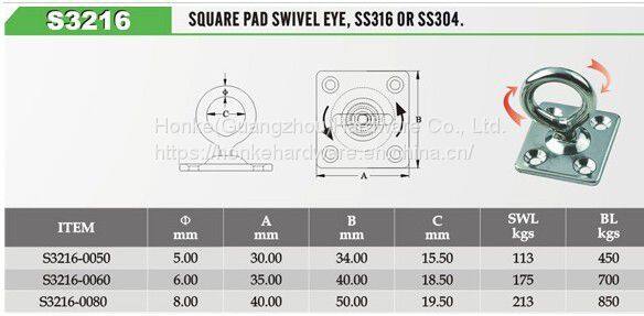 Marine Hardware Sail Boats And Yachts Hardware Fittings Stainless Steel Square Pad Swivel Eye Plate