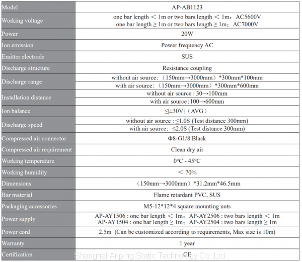 AP-AB1123 AC Electroshock-proof Ion Bar