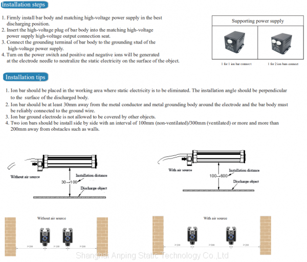 10W AP-AB1207 Anti-shock Static Eliminator Air Source AC Pulse Ion Bar