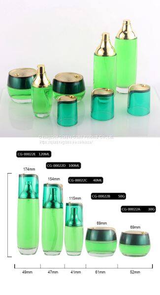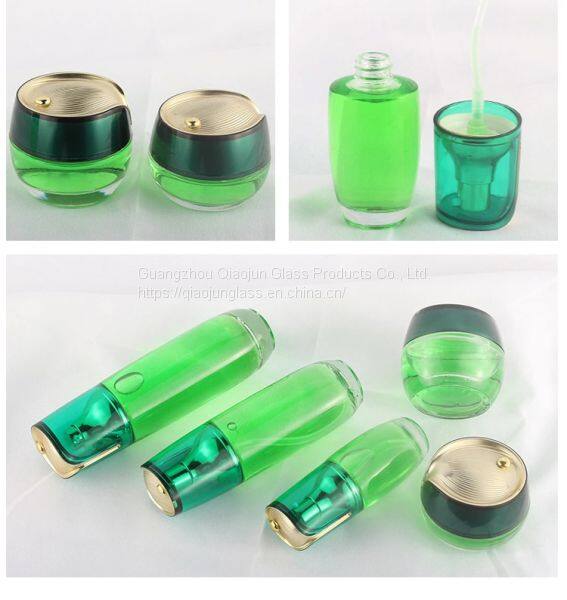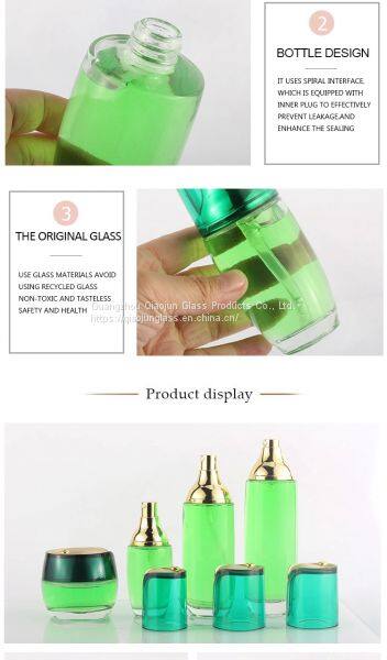 Latest New Model 100Ml Green Skin Care Glass Cosmetic Lotion Bottle With 30G Jar