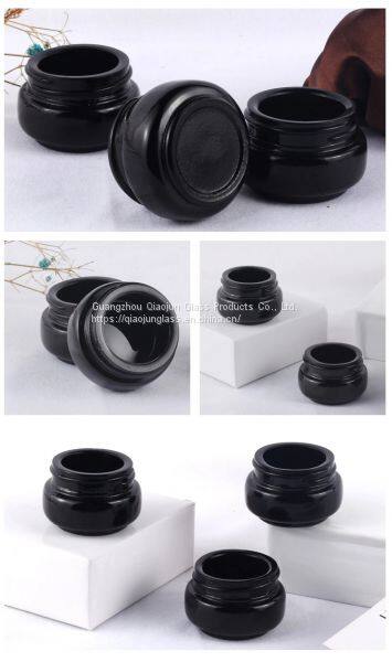 Fashionable 20G Round Black Glass Cosmetic Cream Jar With Customize Lid