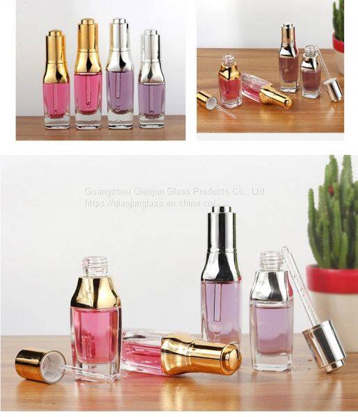 Popular 30 Ml 50 Ml Serum Gold/Sliver Press Glass Dropper Bottle