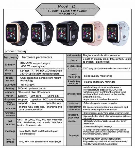 Smart Watch Smart Watch Bluetooth Music Player Sports Pedometer Phone Watch