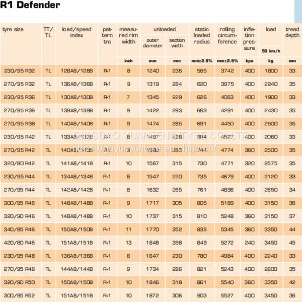 China Defender Tyre 320/90 R50 Tires With Pattern R-1