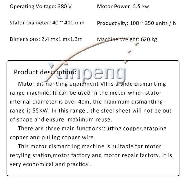 Xinpeng Used Motor Copper Drawing and Dismantling Equipment
