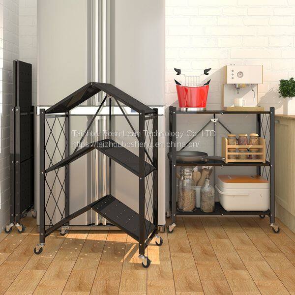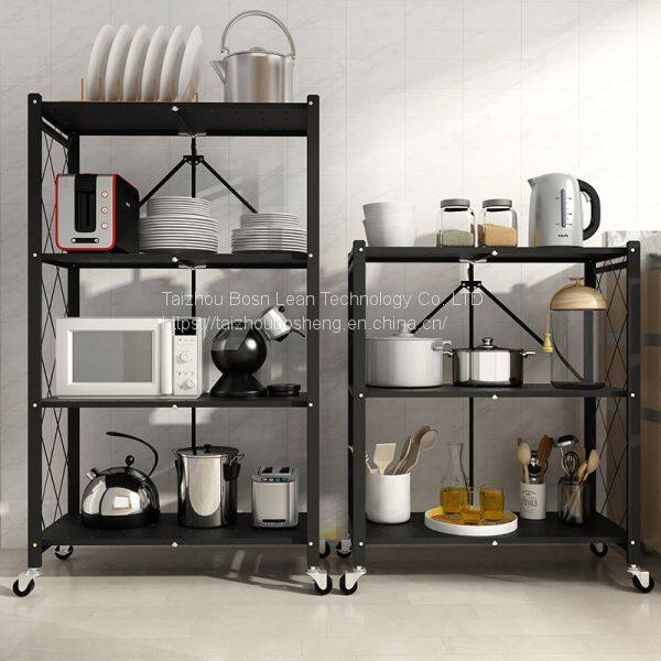 Multi Tier Metal Folding Kitchen Storage Shelf For Microware Oven