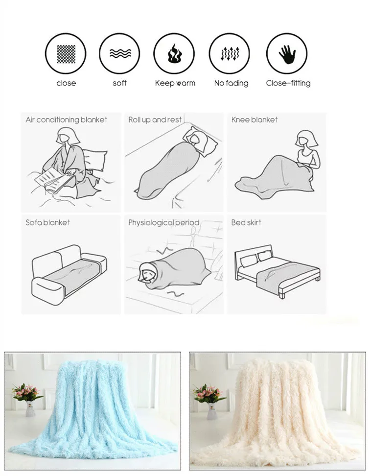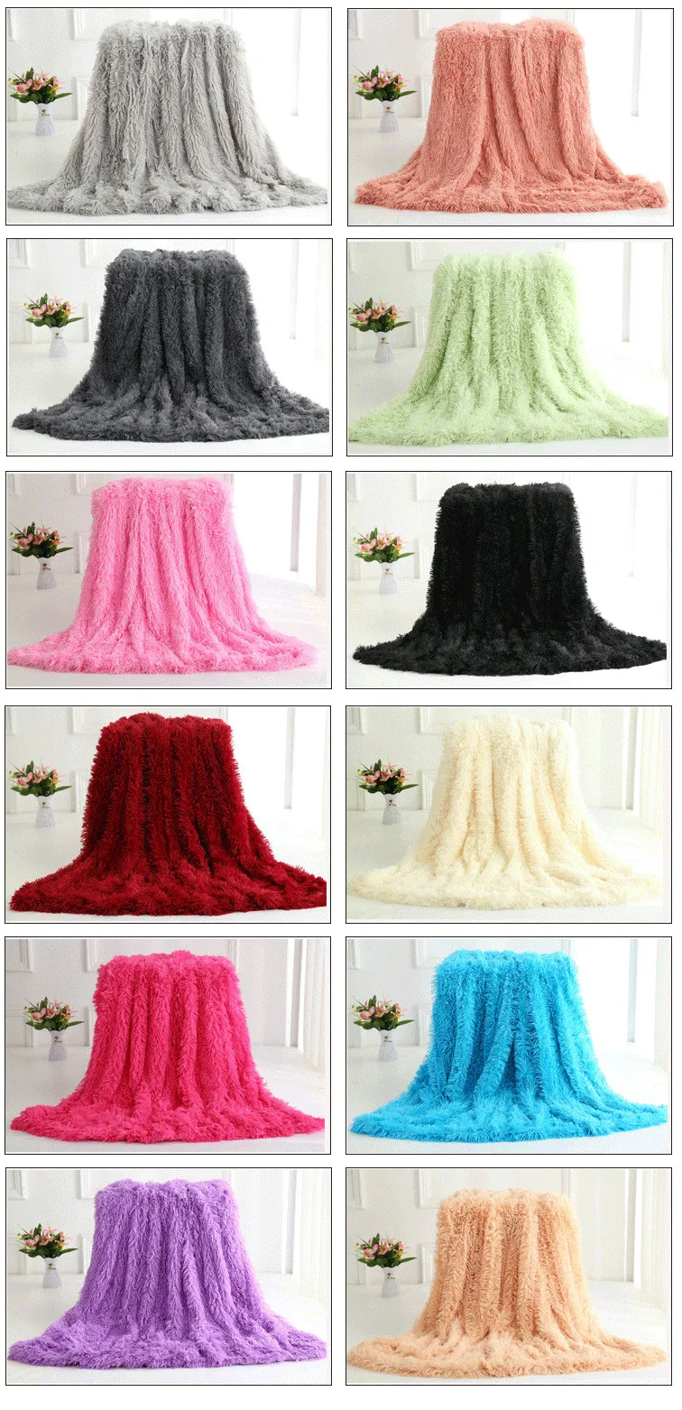 Amazon Hot Sale Wholesale Custom Size Luxury Super Soft Faux Fur Long Hair Fleece PV Plush Throw Blanket