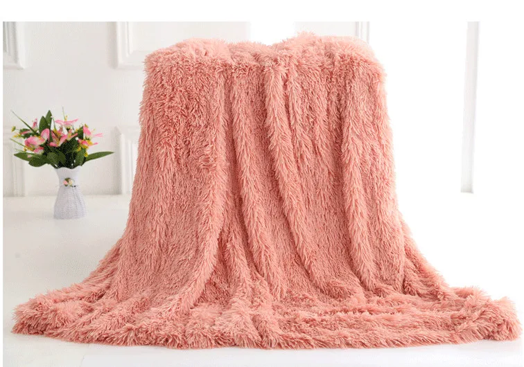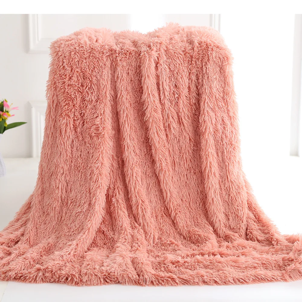 Amazon Hot Sale High Quality Wholesale Exquisite Solid Color Pv Velvet Long Hair Crystal Plush Blanket