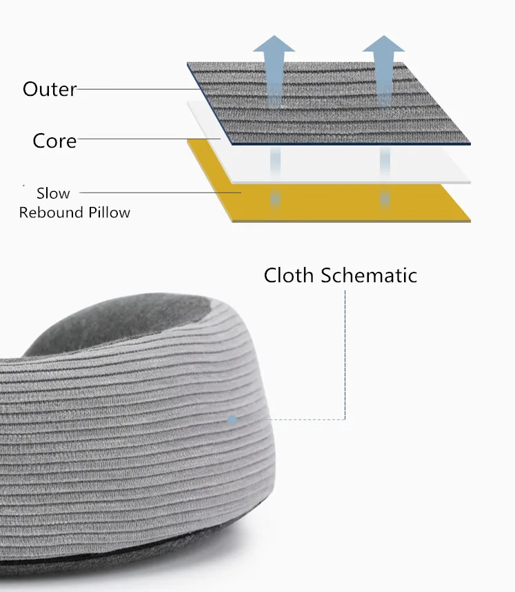 This travel pillow is made of 100% memory foam with high quality elasticity and breathability. The memory foam we used us also called ”3-second return” foam, so you could let go of your worries about foam deformation.