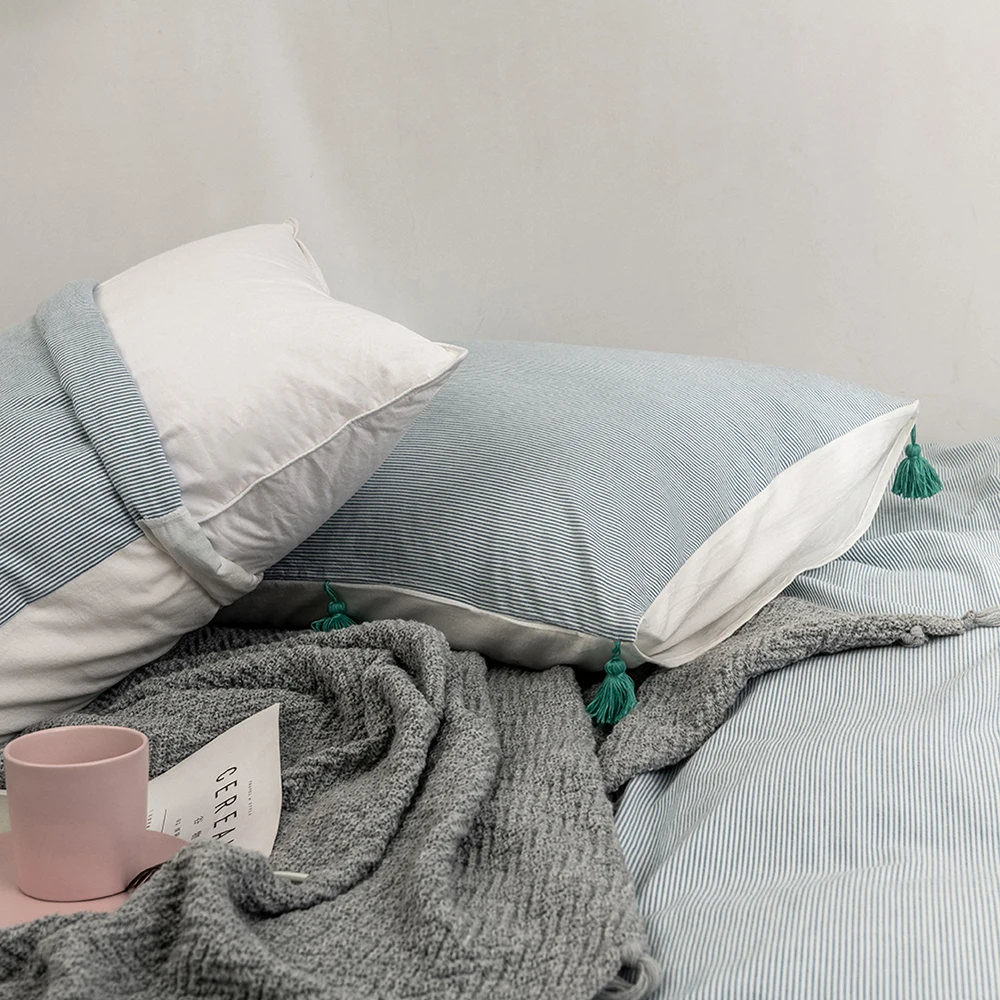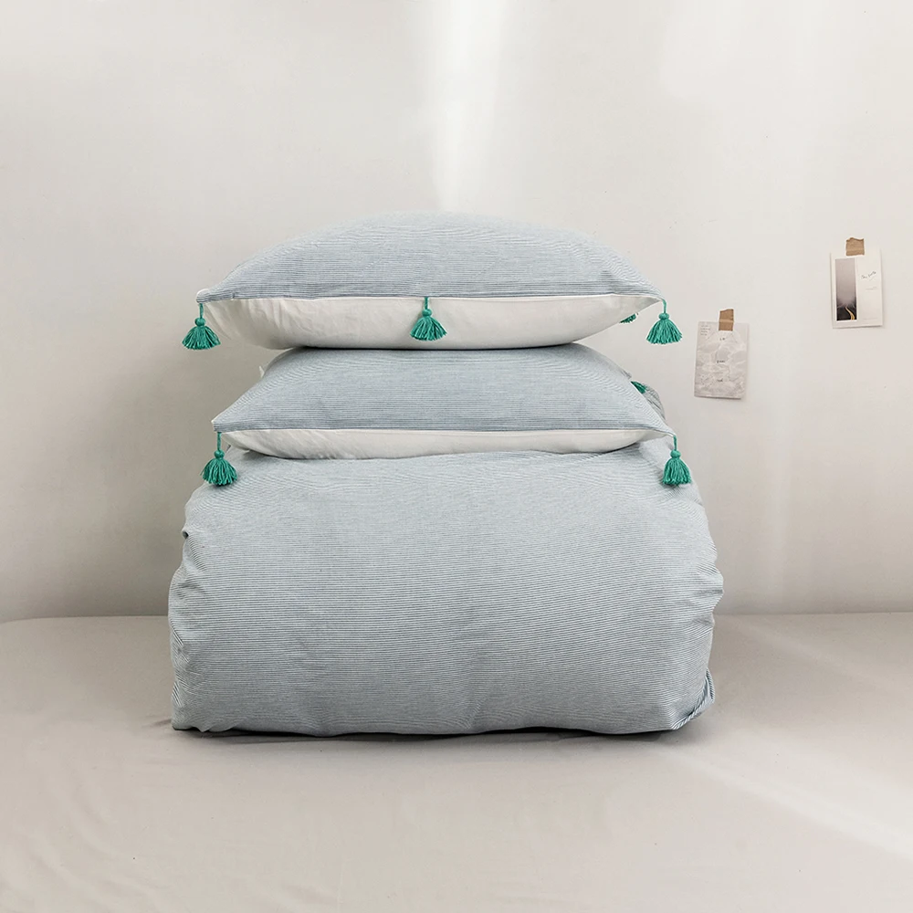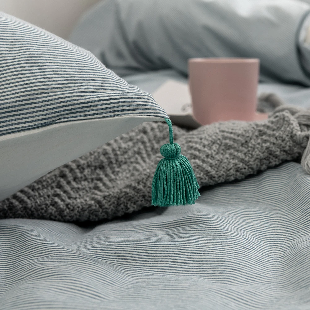 100 Washed Cotton Baby Bedding Sets With Fuzzy Ball For Hotel or Livingroom