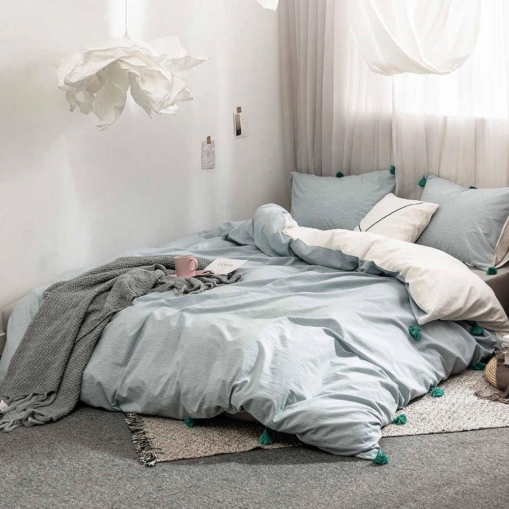 High Performance Nordic Style Quilt Bad Sheets Cotton Bedding Set With Pompom Fringe