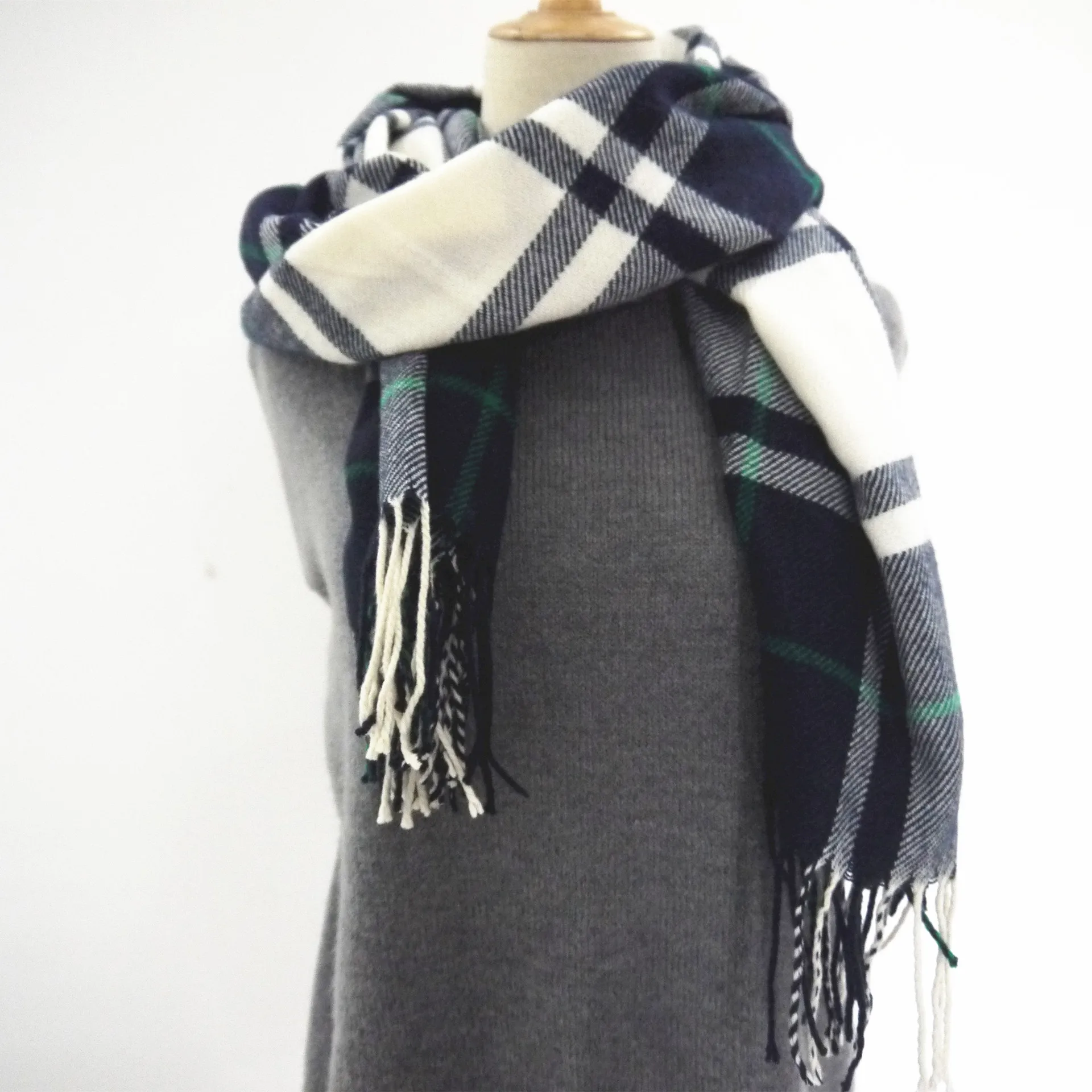 Korean version of warm lattice tassel scarf