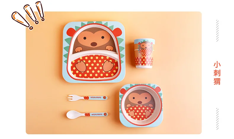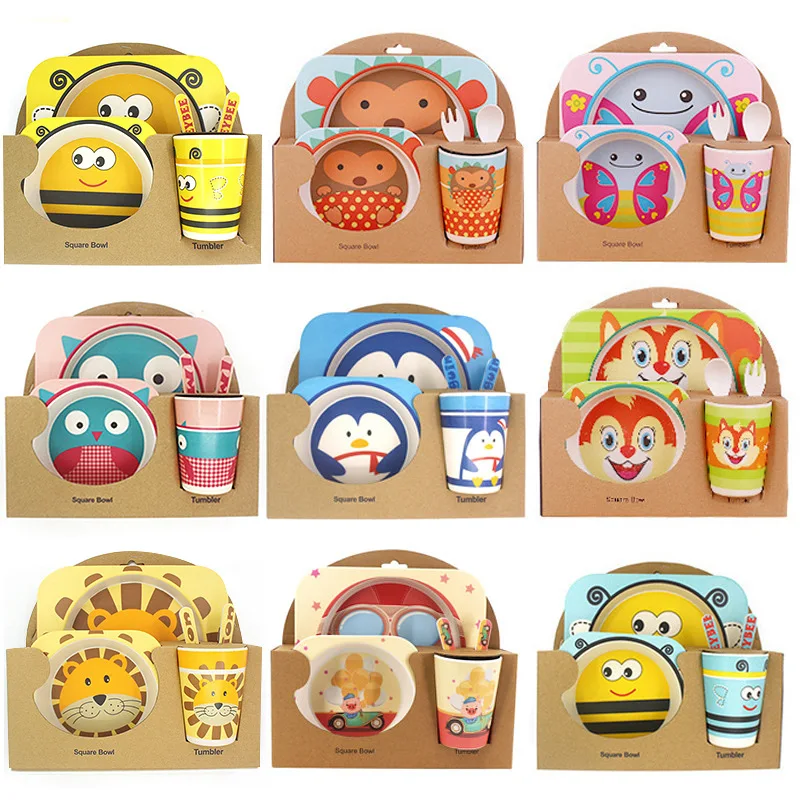 Creative Cute Cartoon Bamboo Fiber Children Tableware Set of Five Sets of Kindergarten Baby Bowl Children's Dinner Plate