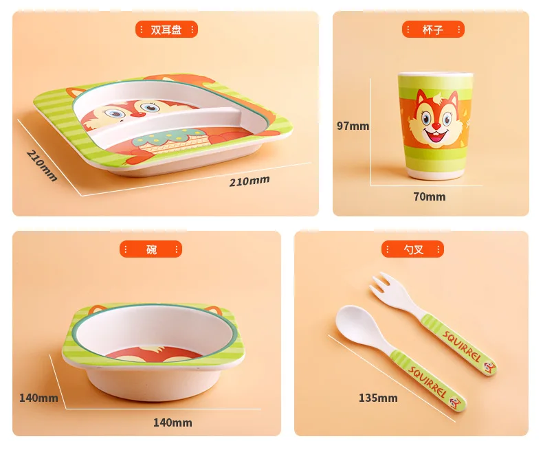 Creative Cute Cartoon Bamboo Powder Bamboo Fiber Children Tableware Set of Five Sets of Kindergarten Baby Bowl Children's Dinner
