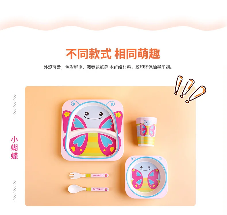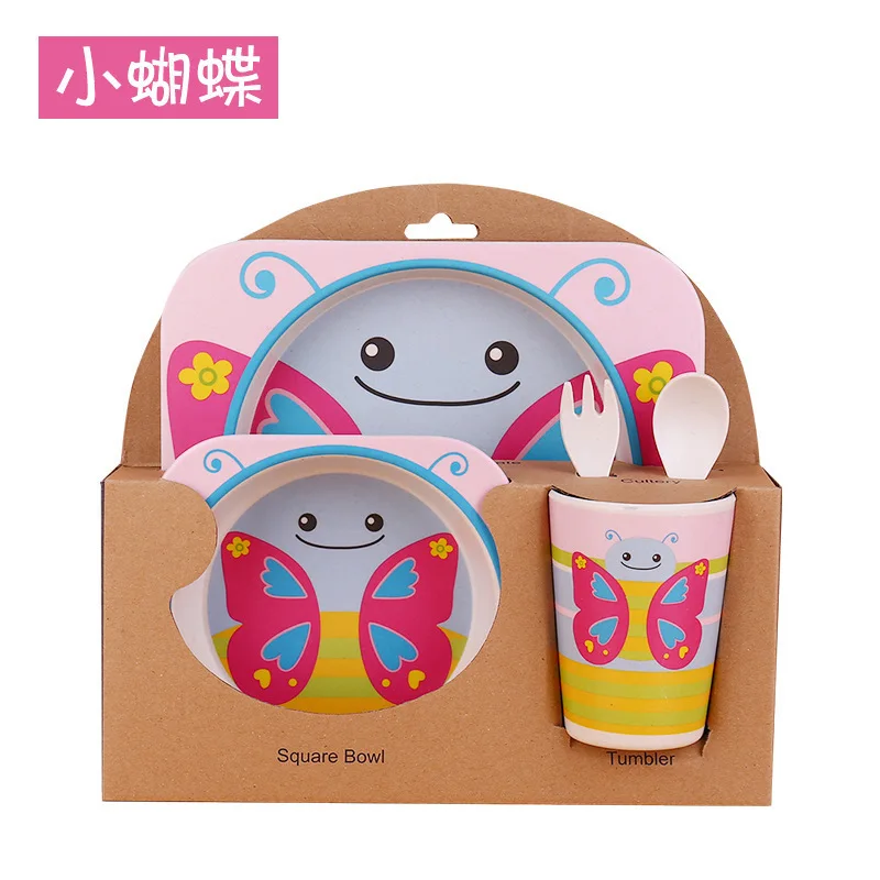 Home > Products > Bamboo Tableware > Butterfly Creative Cartoon Bamboo Fiber Children Tableware Set of Five Sets of Kindergarten Baby Bowl Children's Dinner Plate