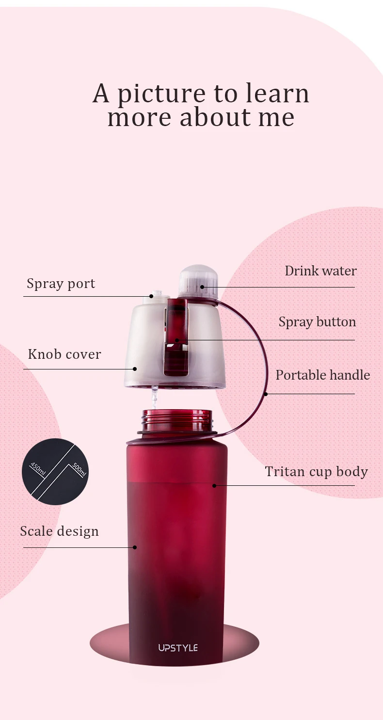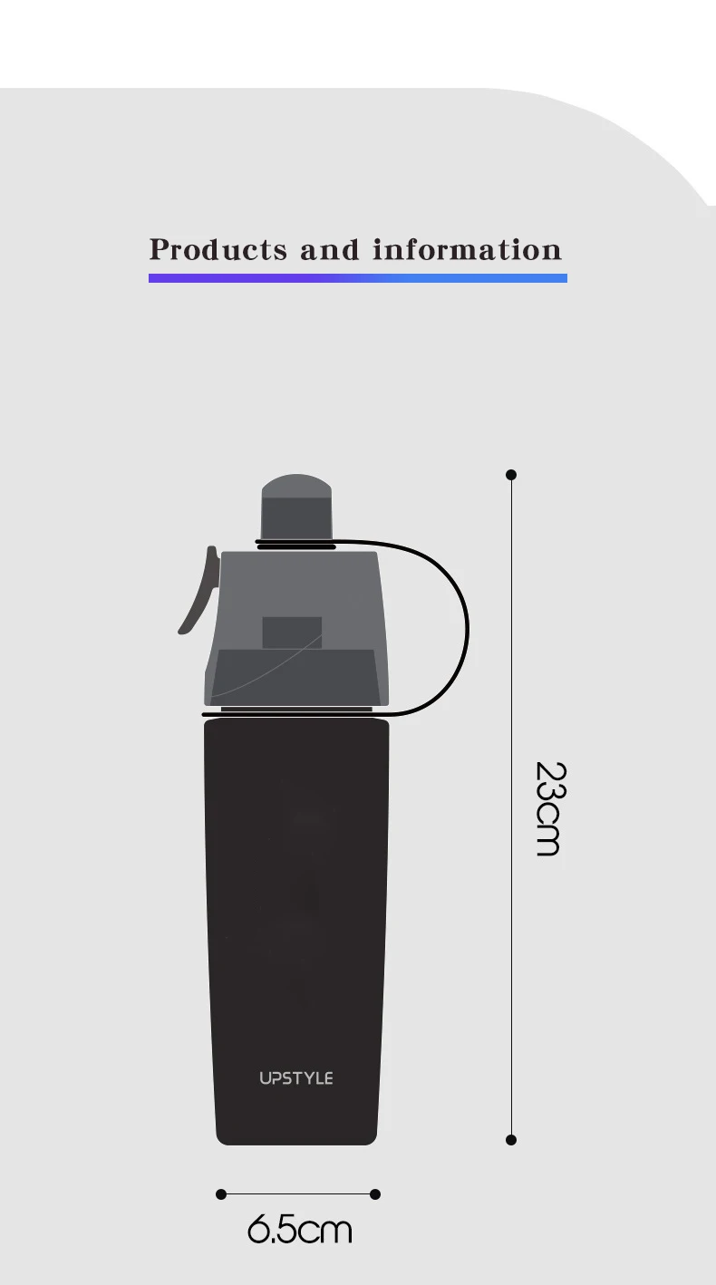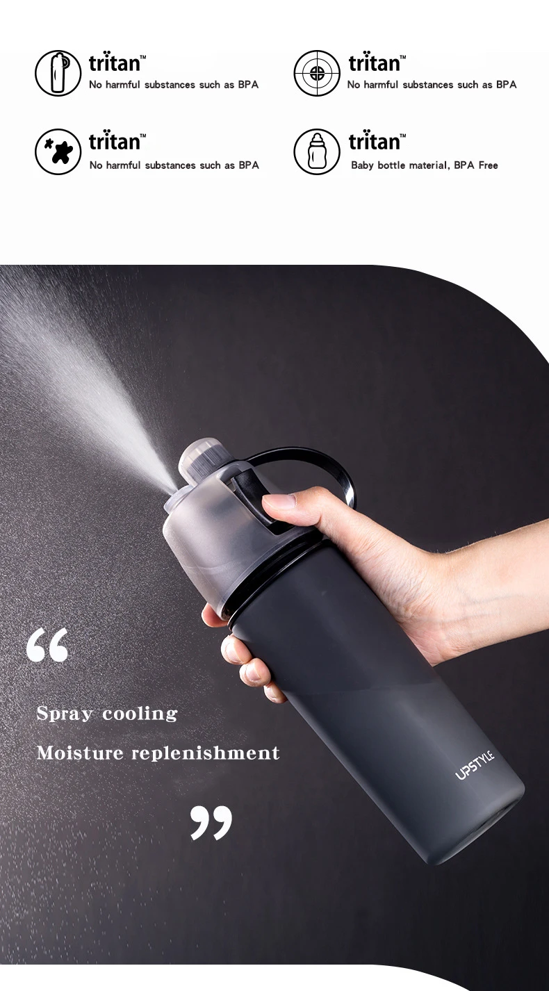 Custom Logo 64Oz Drinking Bottle Bpa Free Plastic Spray Sports Bottle 600Ml