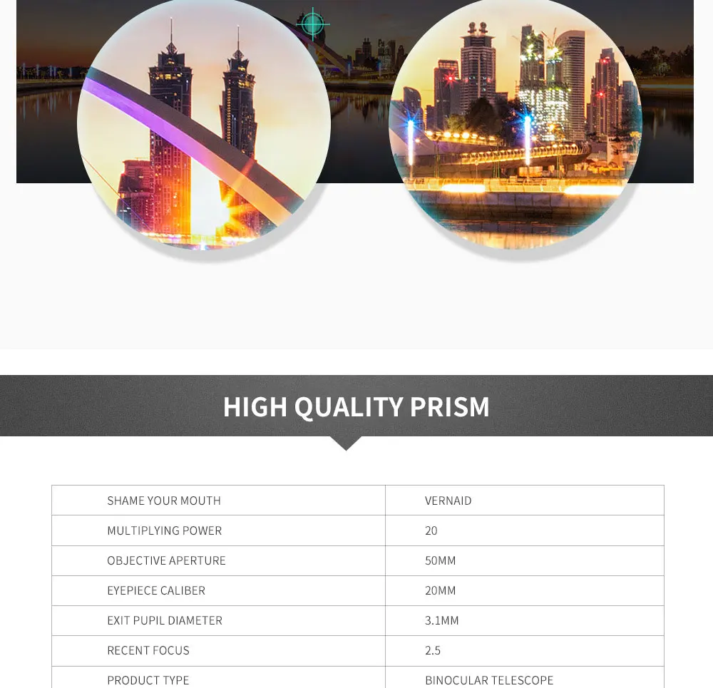 High Quality Outdoor Hunting Camping Hiking Tactical 20X50 Night Day Binocular Telescope