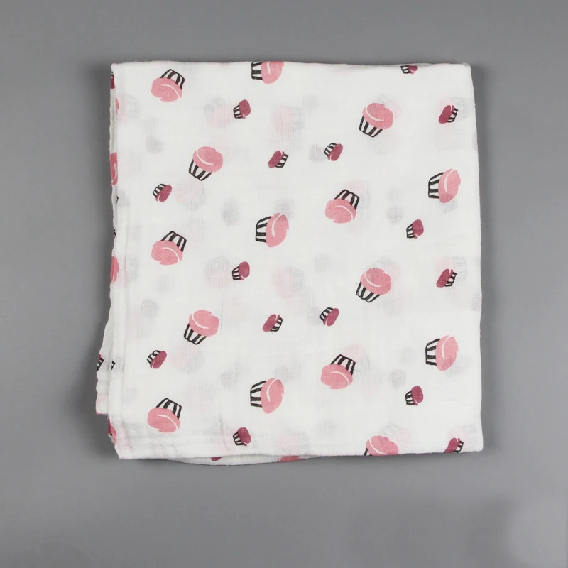 I@home China Double Sided Soft White Cartoon Printed Cotton Baby Swaddle Blanket Wrap Muslin