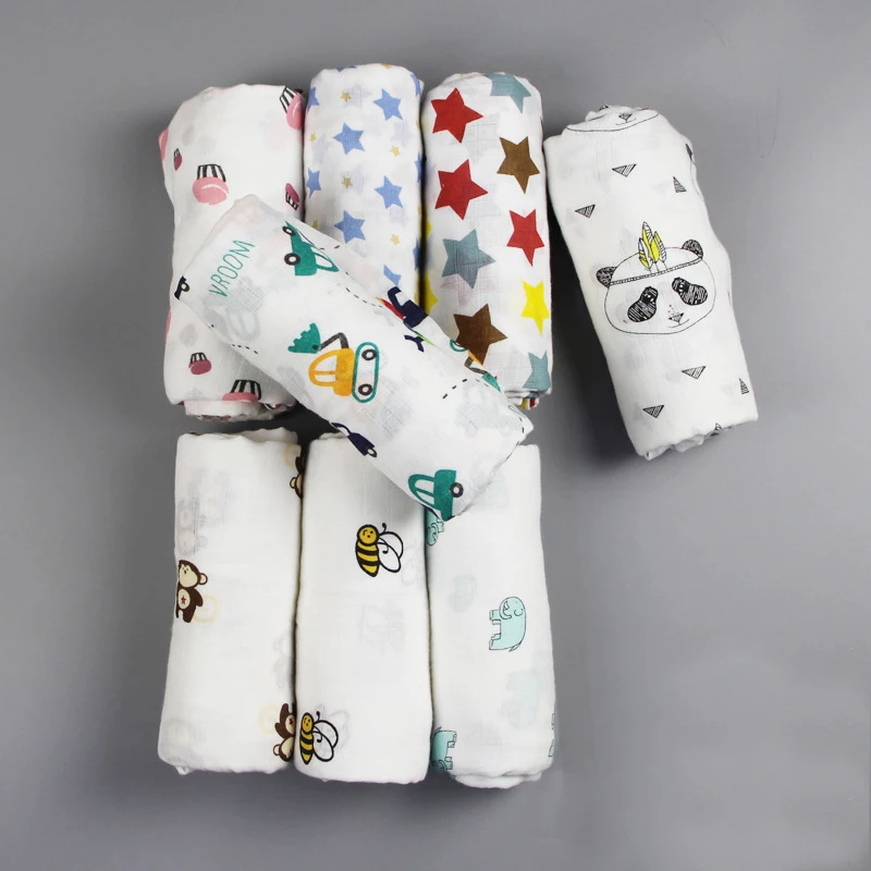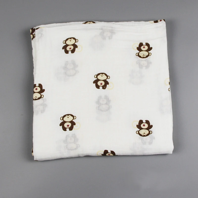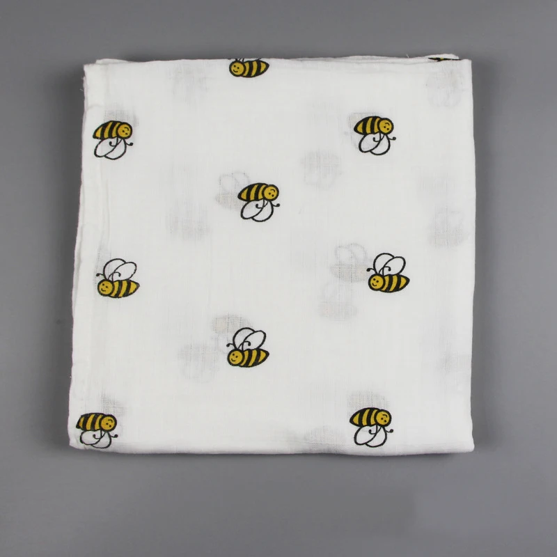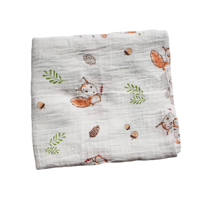I@home Textile Thin Ice Silk Cartoon Print Baby Bath Towel Muslin 100% Cotton Baby Blanket Swaddle