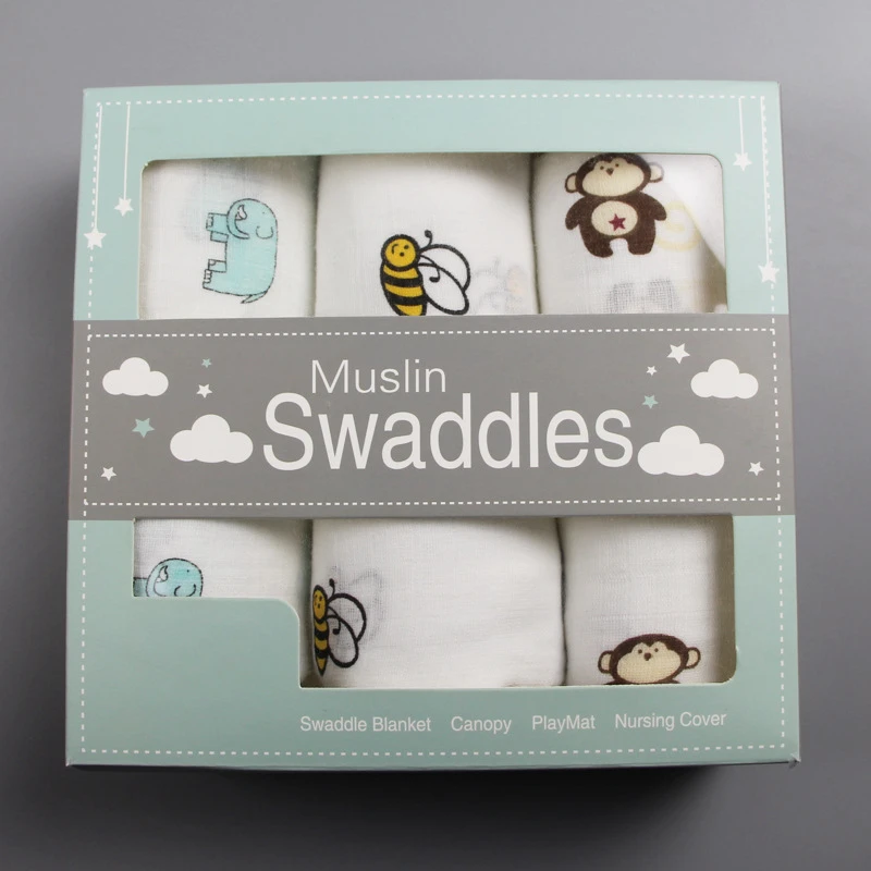 I@home Cartoon Printed New Born Bath Towel Bamboo Baby Wrap Swaddle Cotton Blanket Muslin