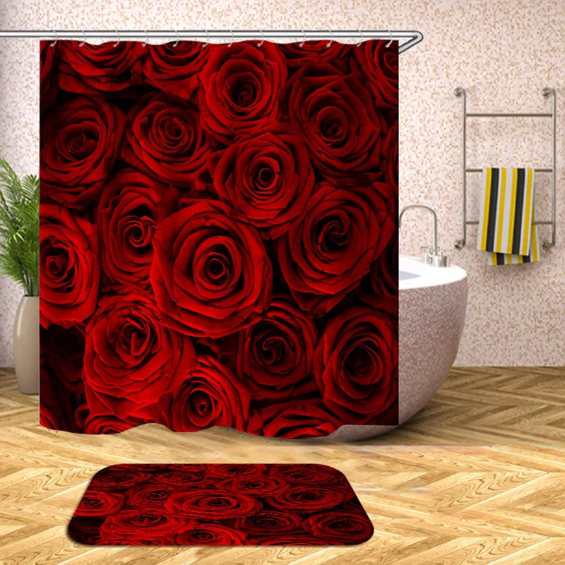 I@home Custom Design Eco Friendly Waterproof Bathroom Red Floral Shower Curtain With Roses