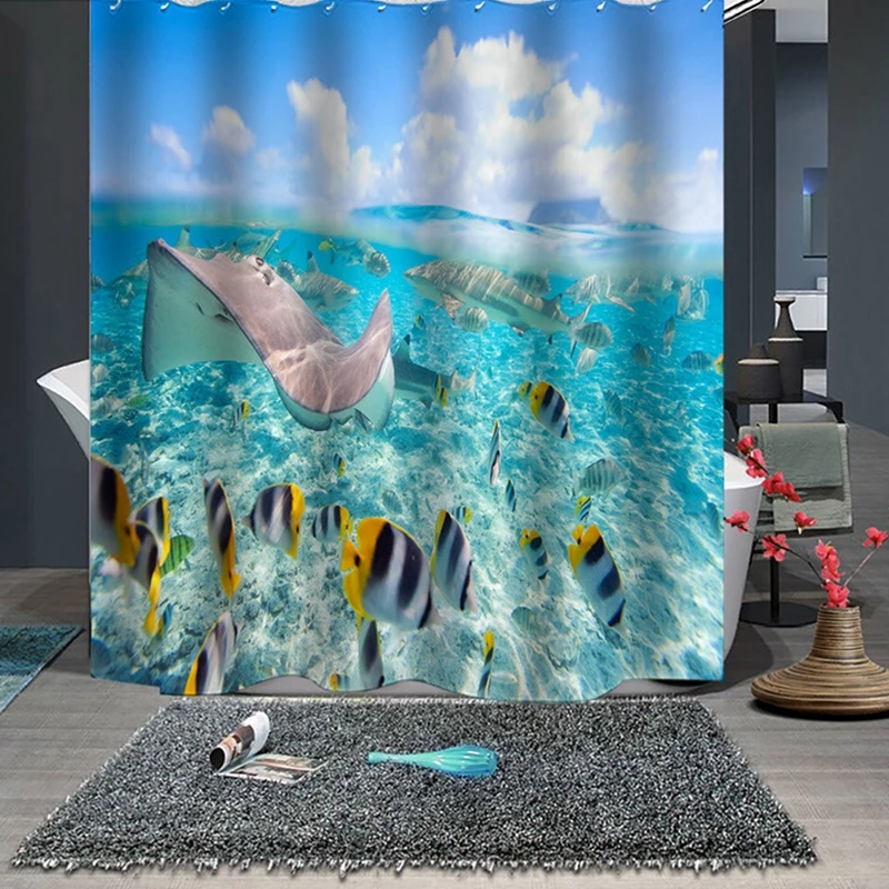 I@home Amazon Hot Sea Fish Digital Printing Polyester Shower Curtain Waterproof Bathroom
