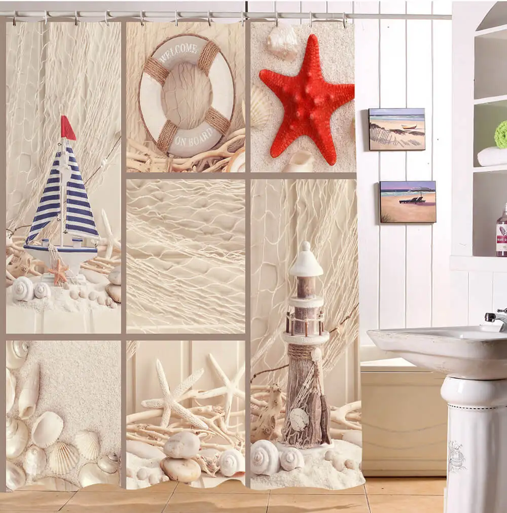 Home > Products > Shower Curtain series > I@home Beach Shells Starfish New Digital Printing Polyester Shower Curtain