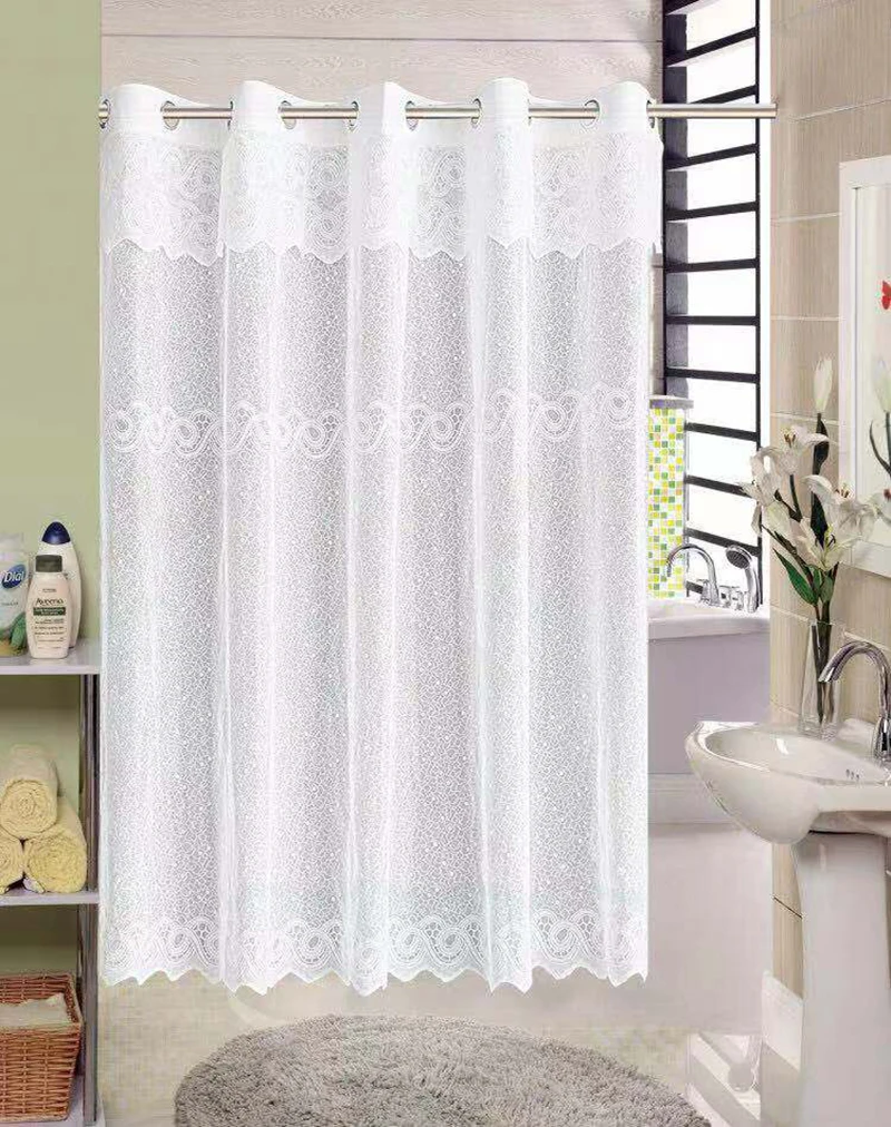 Home > Products > Shower Curtain series > I@home White Warp Embroidered Lace Polyester Shower Curtain Bathroom