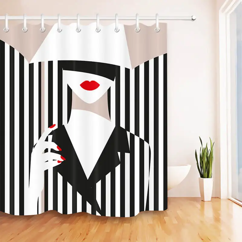 Home > Products > Shower Curtain series > I@home Designer Black and White Polyester Shower Curtain Woman for Bathroom