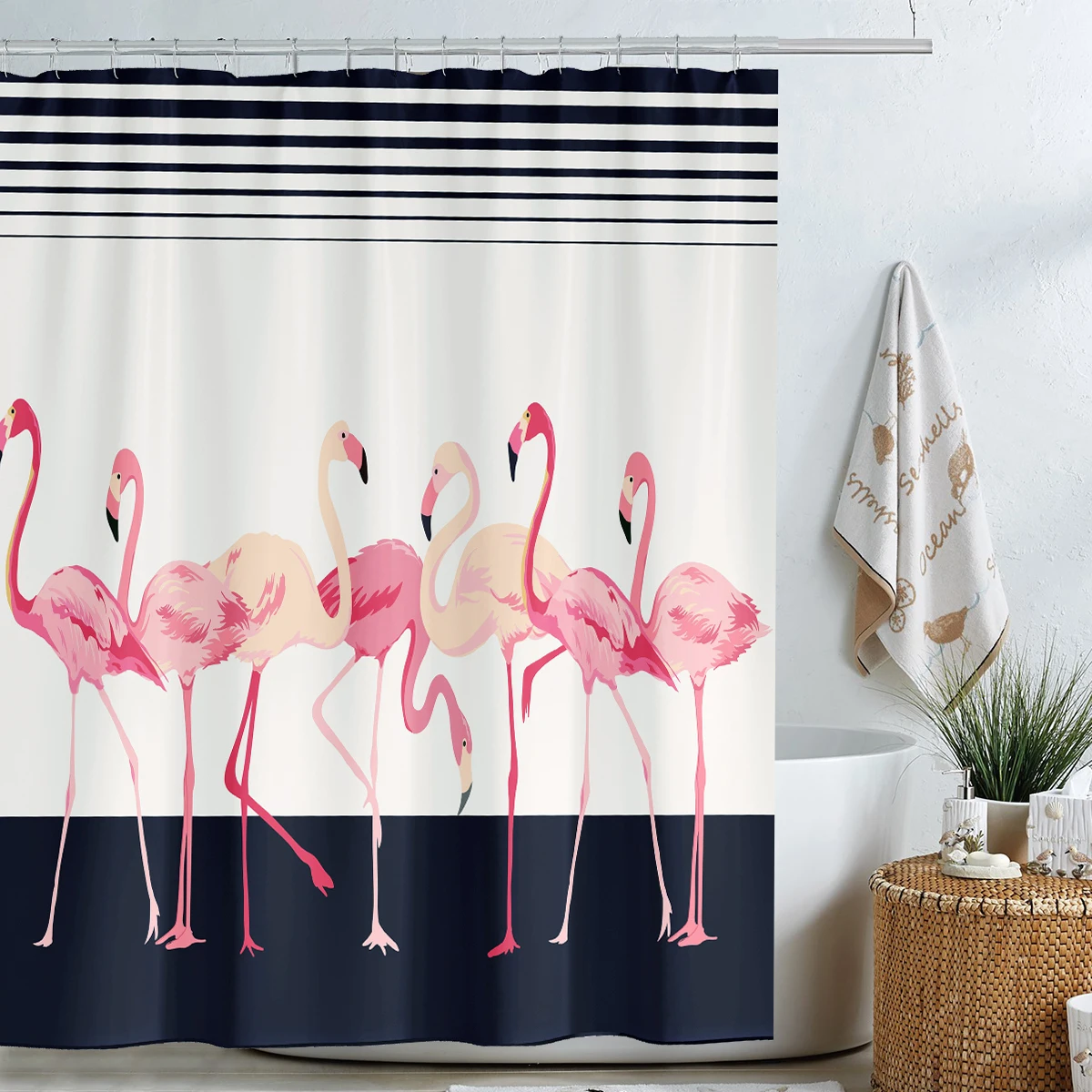 I@home Custom Made Polyester Pink Cartoon Print 3d Shower Curtain Bathroom Flamingo Waterproof