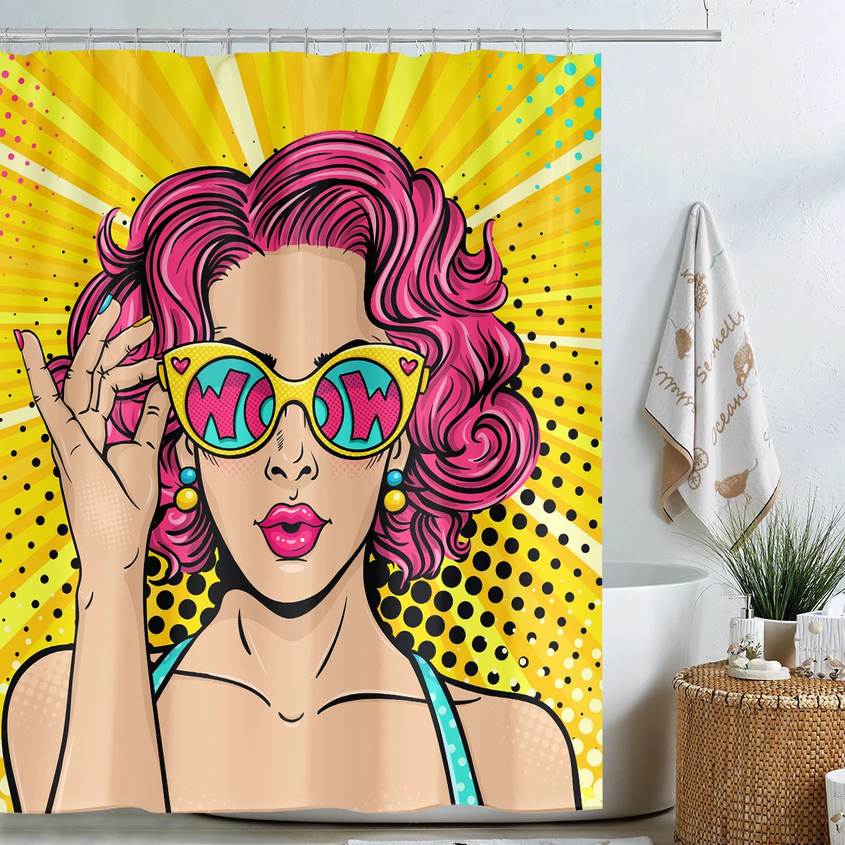 - bright-colored shower curtain