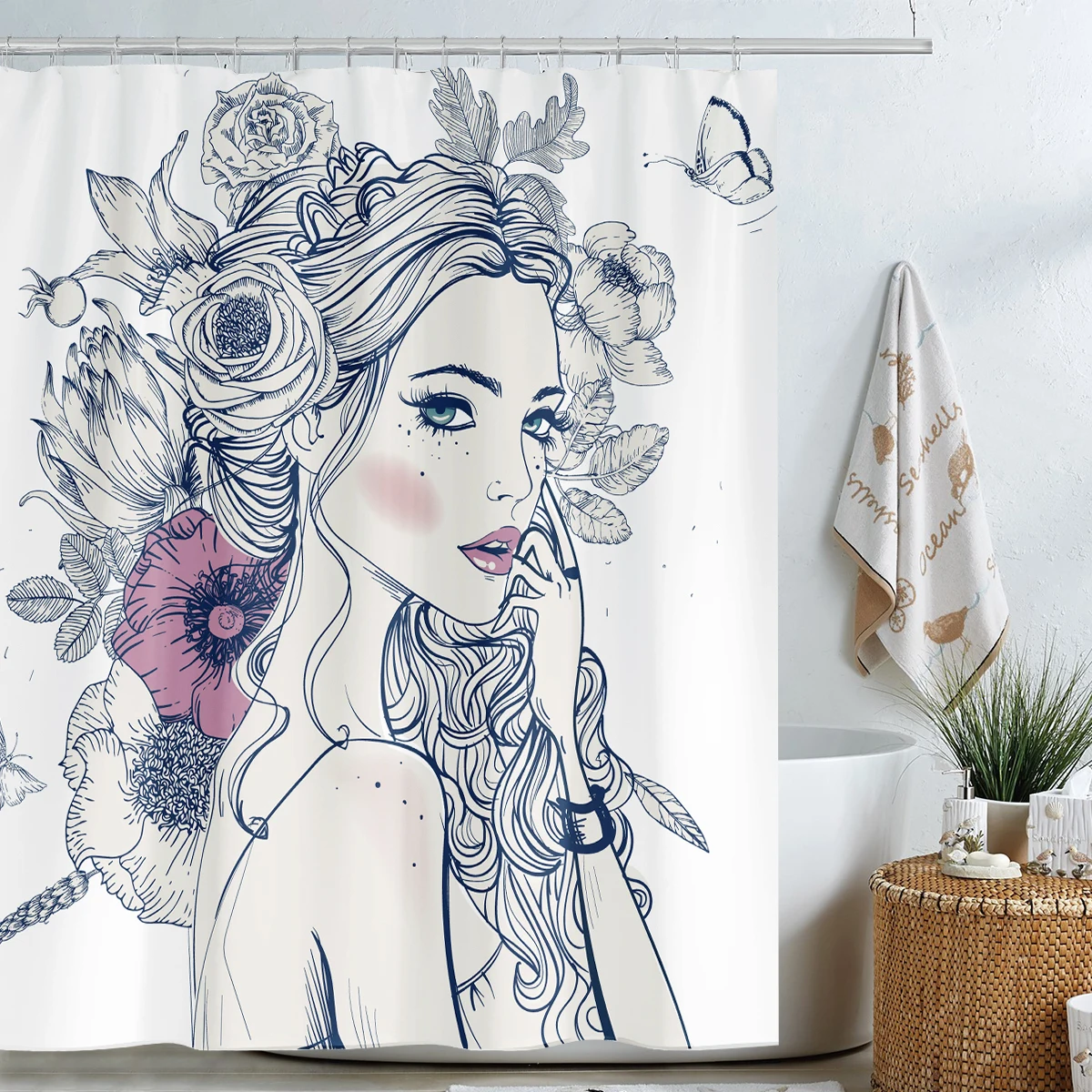 I@home Europe Style Sexy Women Fashion Waterproof Polyester Fabric Shower Curtain Digital Printing