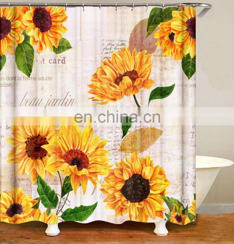 I@home Polyester Fabric Waterproof Sunflower Bathroom Shower Curtains Custom Digital Printing