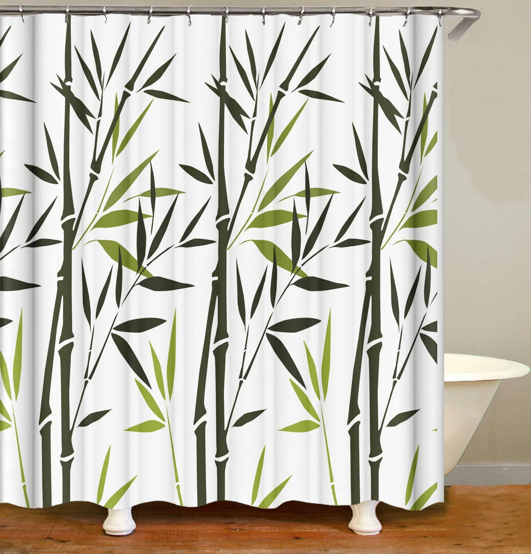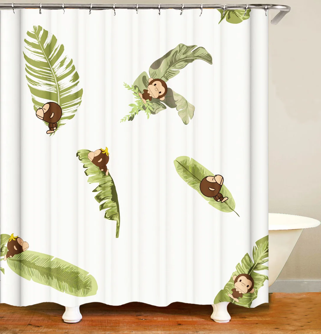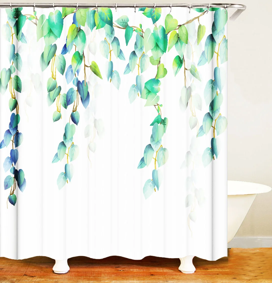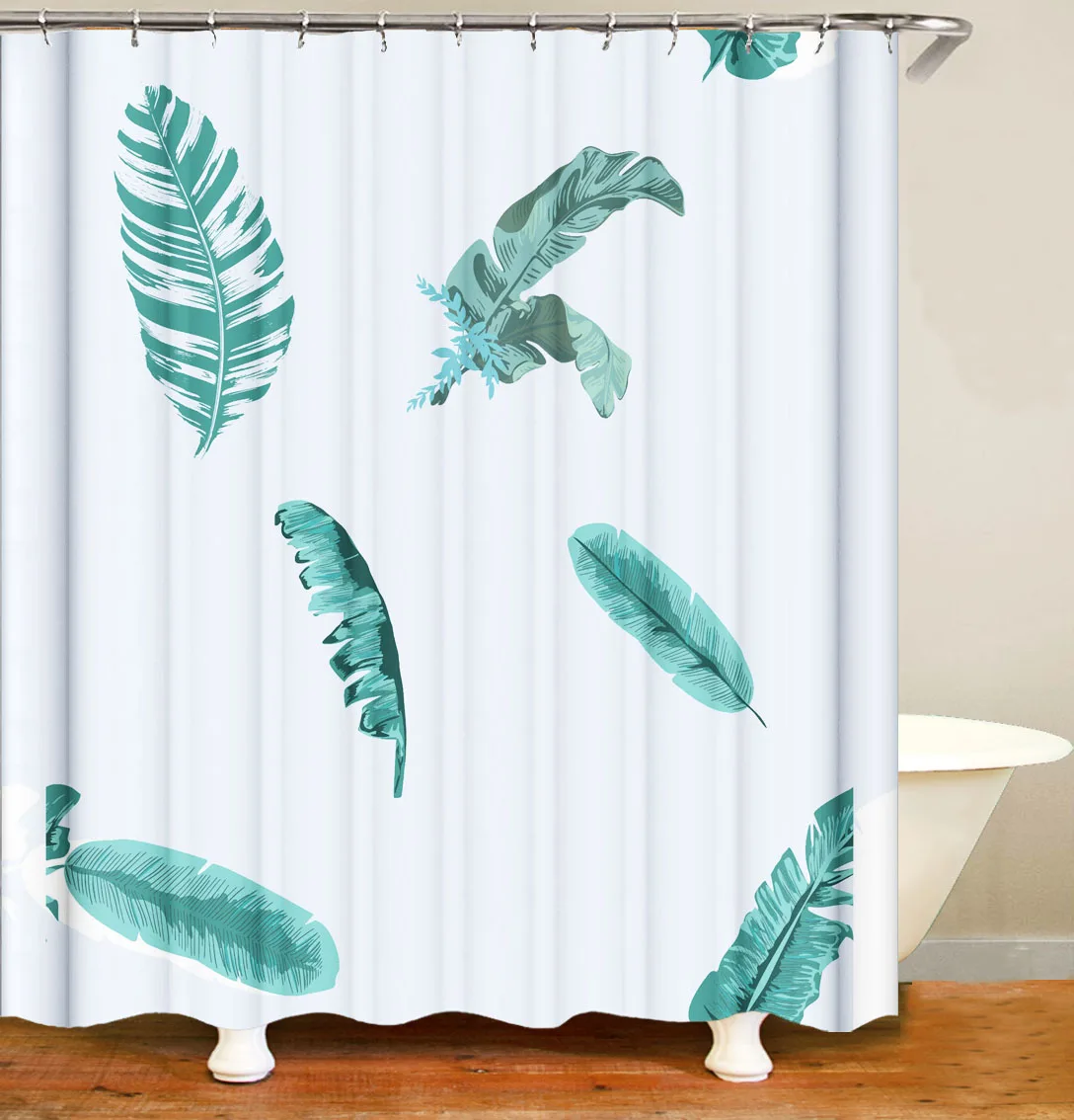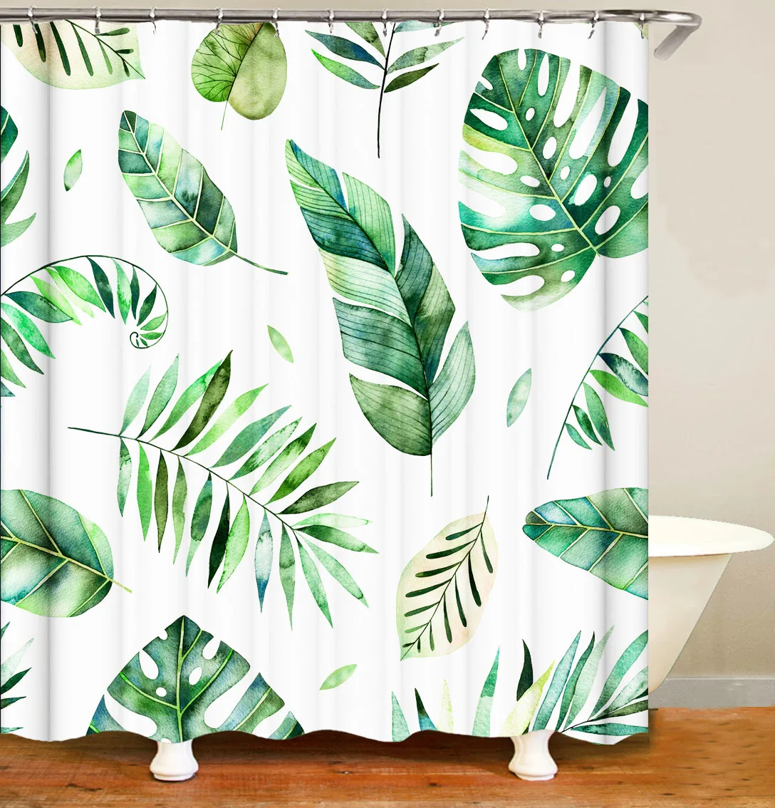 I@home Wholesale Eco Friendly Tropical Green Leaf Print Eco 3d Shower Curtain Bathroom Waterproof