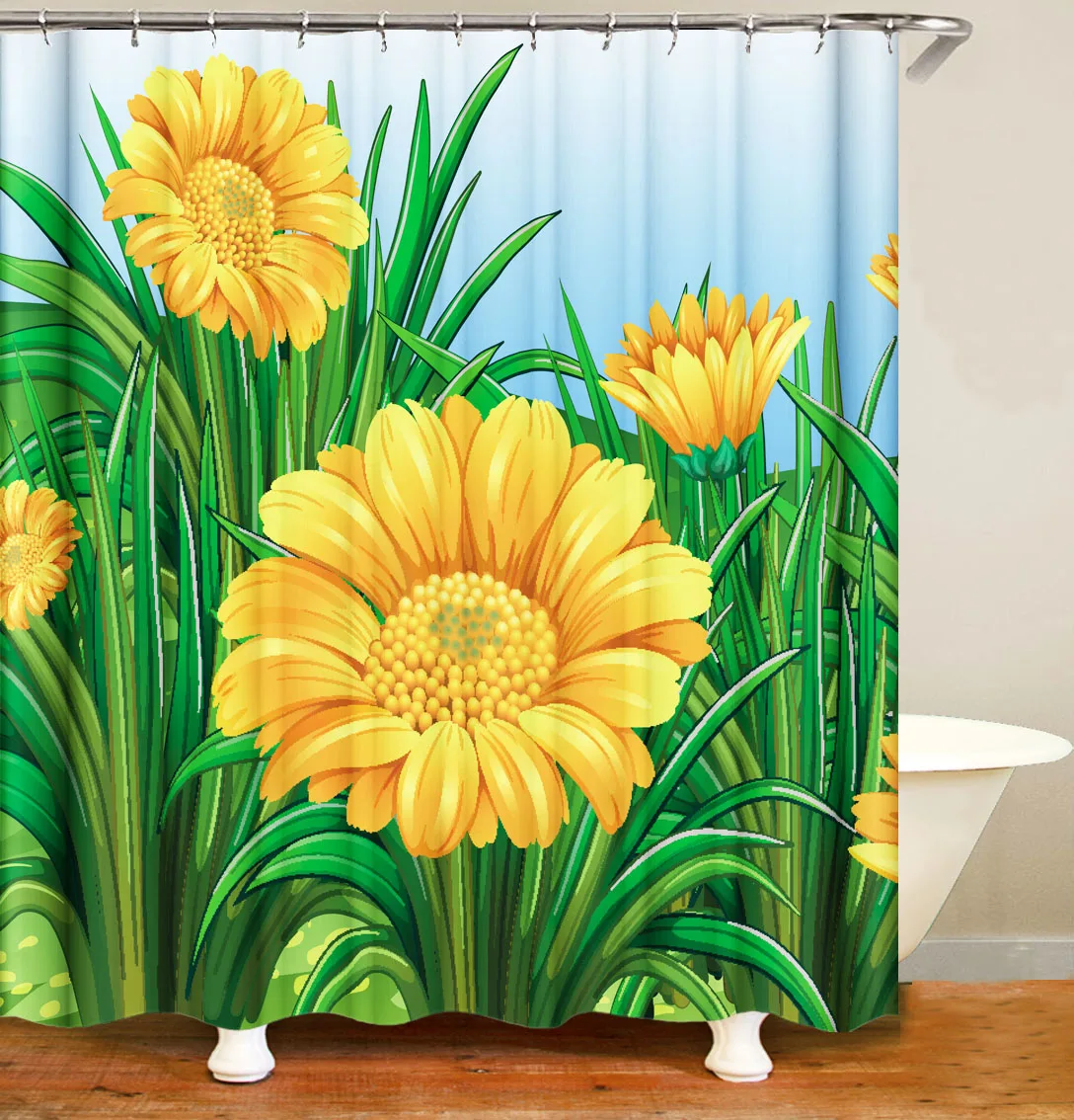I@home Ready Made Modern Digital Printing 3d Burlap Flower Colorful Shower Curtain Waterproof
